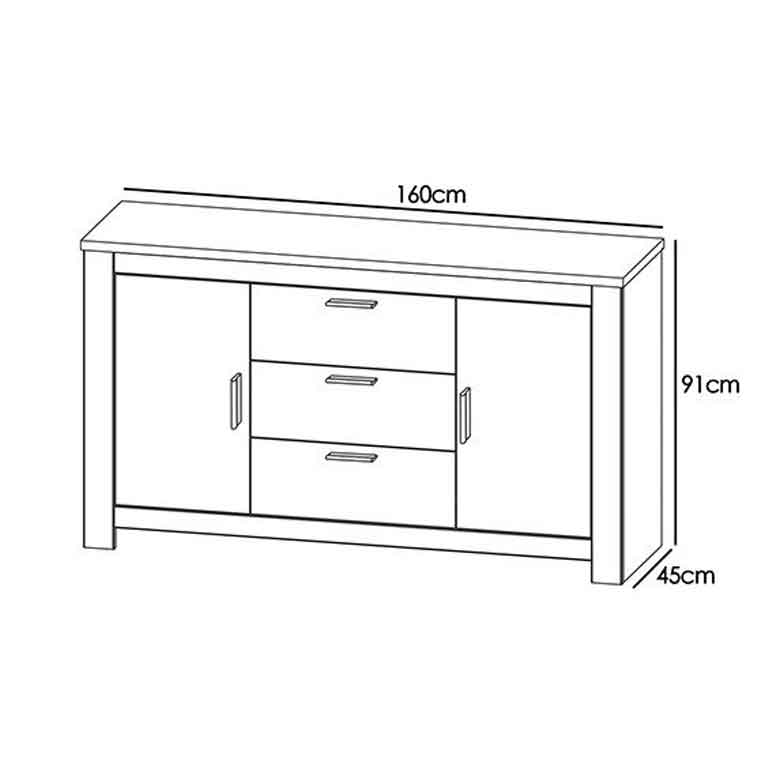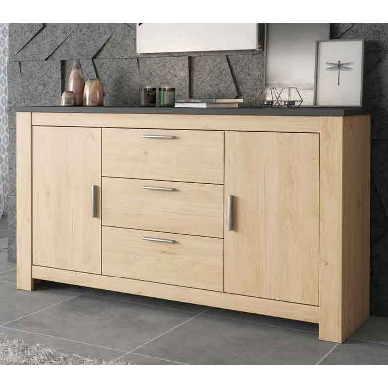 Encontre os 160 cm da sua parede porque acabou de encontrar o aparador de que precisa. Este aparador na cor carvalho é ideal para quem procura um mobiliário de design e prático. Possui duas portas e três gavetas para guardar tudo o que você precisa.