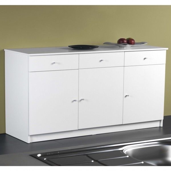 Este armário balcão com três portas e três gavetas, oferece-lhe a arrumação de que necessita para a sua cozinha.