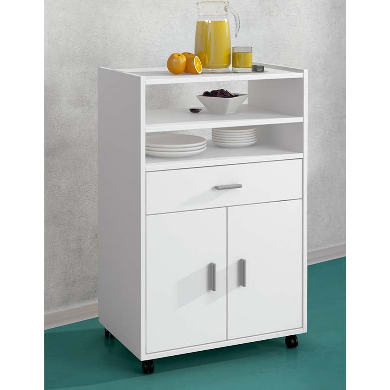 Móvel de cozinha baixo, com 2 portas, 1 gaveta, 1 prateleira e rodas que lhe permitem deslocar para onde mais precisa.