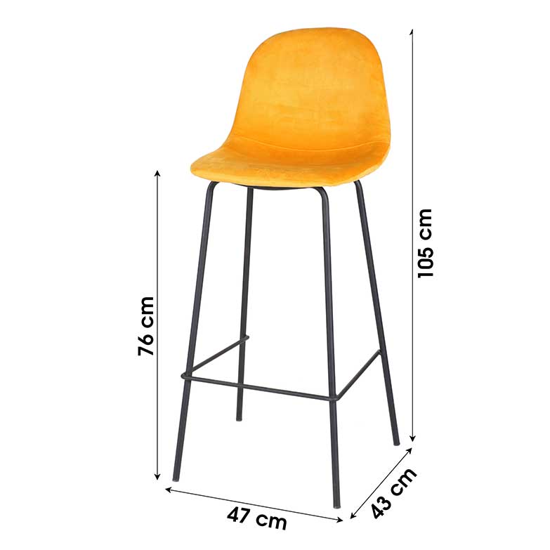 Deixe-se seduzir por este banco alto em veludo amarelo mostarda para completar o mobiliário da sua cozinha ou sala de estar. O seu assento de veludo de toque suave confere-lhe um estilo elegante que lhe permitirá relaxar com todo o conforto. A estrutura metálica oferecerá robustez e um bom suporte. Este banco moderno trará personalidade ao seu interior de estilo tropical, adicionando um toque sublime de cor.