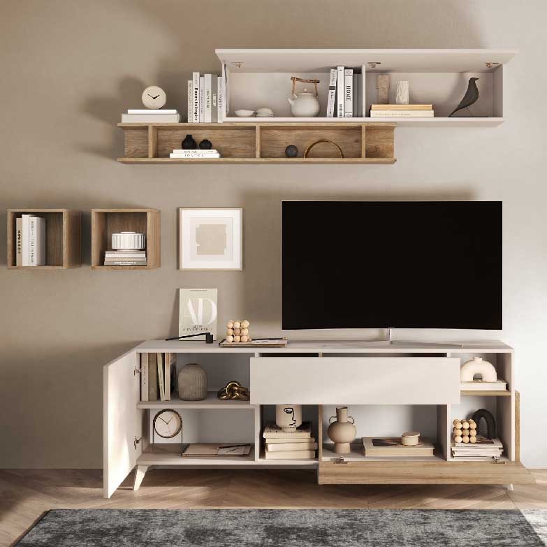 Base TV contemporâneo, elegante e moderna que combina perfeitamente funcionalidade com elementos de design moderno. A porta basculante em Carvalho acrescenta um toque de calor e elegância, complementando perfeitamente a estética moderna. Com dois espaços abertos, este móvel de TV oferece opções versáteis de armazenamento para expor itens decorativos ou armazenar acessórios de mídia, garantindo praticidade e estilo. Combine-o com o nosso Apardor da mesma linha e irá ficar com uma sala de sonho.