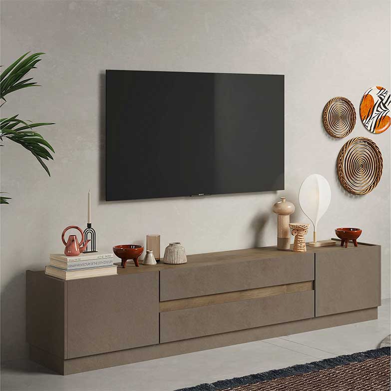 Não precisa de mais nada para manter a área à volta da TV arrumada. Com 2 portas e 2 gavetas, esta base de TV permite-lhe arrumar os seus sistemas de som, consolas de jogos e fios. O requinte dos materiais, com uma resposta agradável ao toque, sublinham ainda mais o nosso compromisso em oferecer soluções práticas mas com bom gosto e elegância.