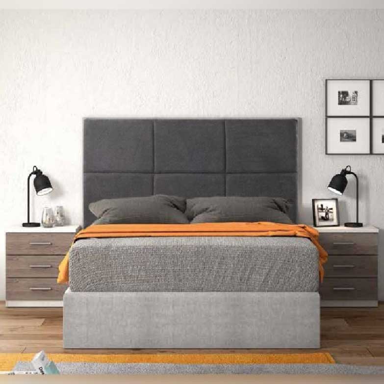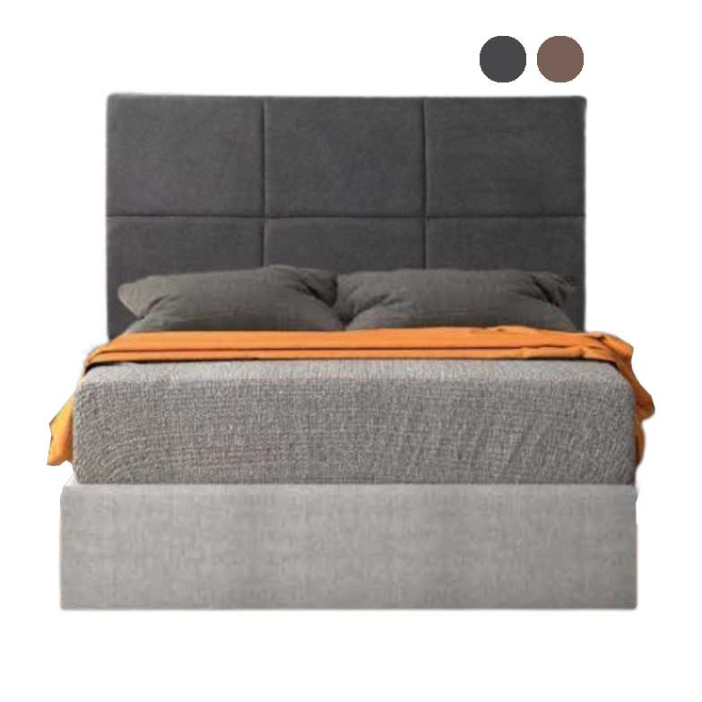 Cabeceira de cama estofada em tecido, com design moderno. Disponível em duas cores, chocolate ou cinzento escuro. Combine-o com um sommier disponível no nosso site e ficará com o seu quarto de sonho.
