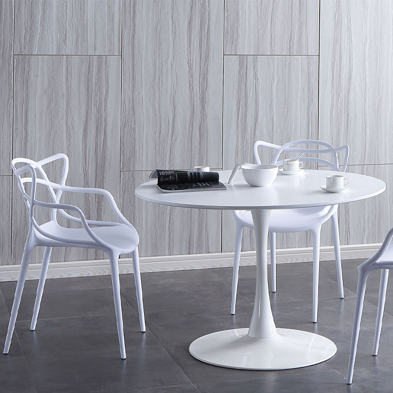 Mesa RedondaMesa para Sala de Jantar ou Cozinha, Lacada a branco ou preto. É constituído por uma base central metálica cromada, que proporciona grande estabilidade à mesa. A tampa superior é em MDF lacado a branco ou preto. Dada a sua pequena dimensão, adapta-se perfeitamente em espaços pequenos, conferindo-lhe amplitude graças à sua configuração redonda.