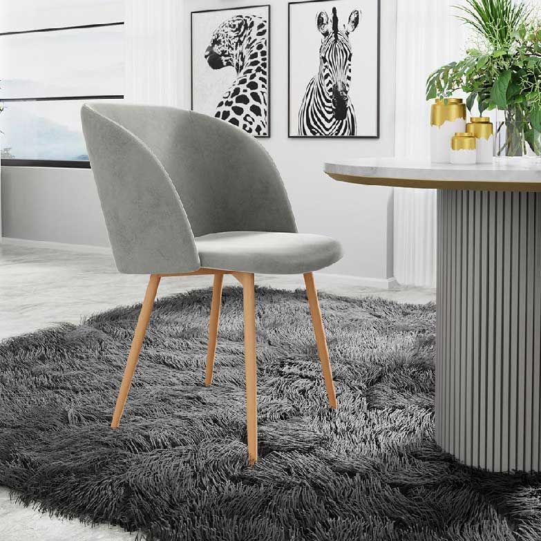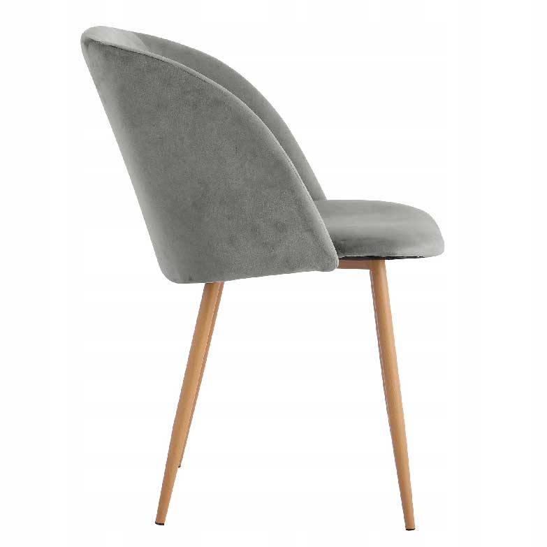 Estes modelos têm pernas de metal estáveis e altas com um folheado de madeira e um assento perfeitamente perfilado com um tecido aveludado ao toque . É uma excelente solução que funcionará em salas de estar, cozinhas, salas de jantar modernas e escandinavas, ou até no seu quarto como cadeira de suporte.