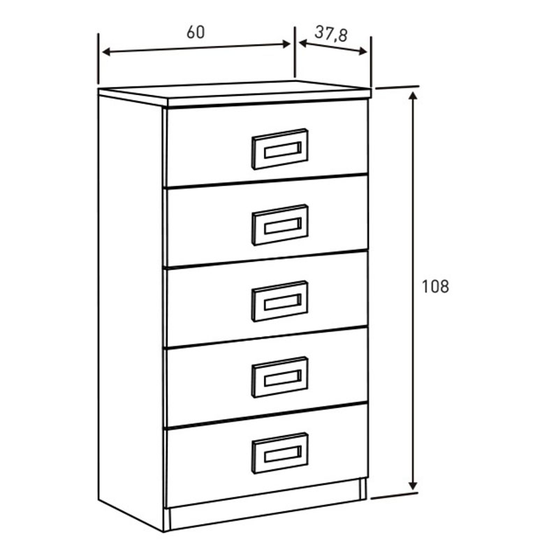 Cômoda com cinco gavetas para quartos Ideal para dar maior arrumação ao quarto.