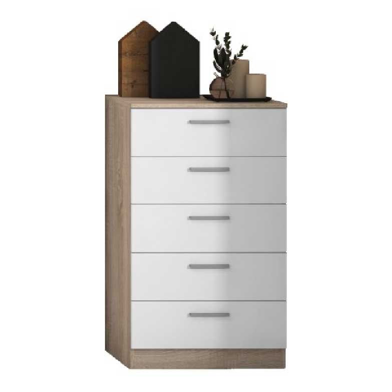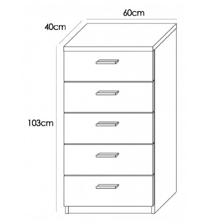 Cameseiro com 5 gavetas, ideal para combinar e com um design muito elegante. Um móvel com grande capacidade e ao melhor preço do mercado. Kit de móveis, fácil montagem.