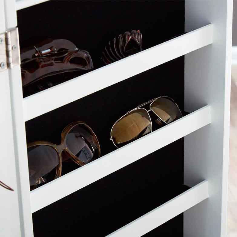 É um verdadeiro amante de acessórios de joalheria? Não imagina sair de casa sem um estilo perfeitamente combinado? Brincar com moda é seu hobby? Se você respondeu sim a pelo menos uma dessas perguntas, então este espelho é perfeito para si. Este modelo permitirá o armazenamento adequados das suas joias e também irá dar um toque de elegância à decoração do seu quarto.