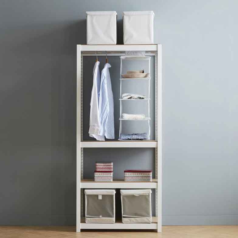 As prateleiras em madeira com estrutura de metal, oferece a solução máxima de armazenamento numa sala, escritório, dispensa, ou onde for precisa. Com prateleiras e cabides nivelados, poderá organizar vários itens e acessórios para torná-los mais organizados. Esta prateleira é fácil de instalar, tem uma estrutura forte e é resistente à ferrugem graças ao revestimento em pó.