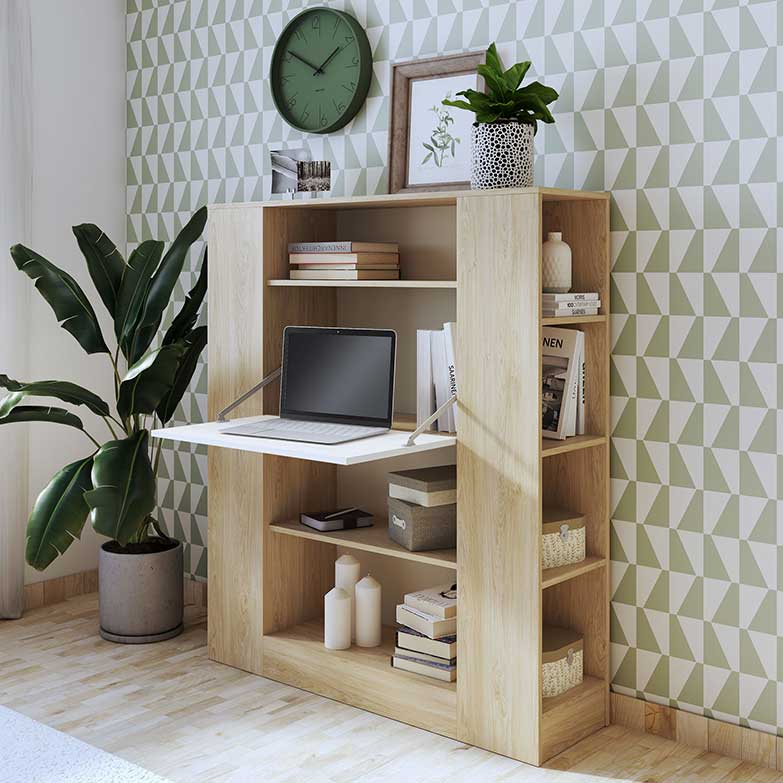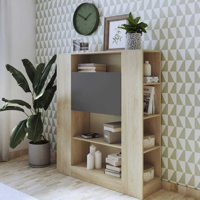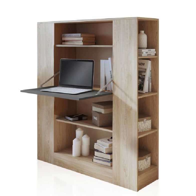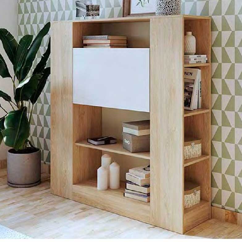Esta Estante com Secretária Dobrável é moderna e diferenciada, a praticidade de uma estante e o conforto de uma mesa em um único módulo.