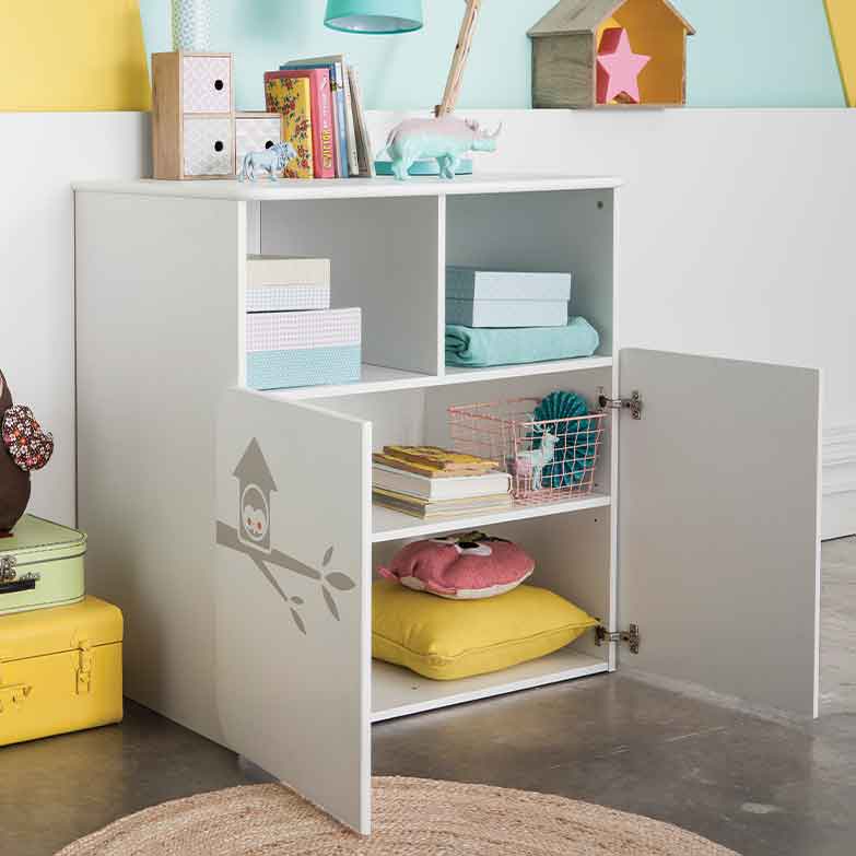 Este lindo fraldário trará um ambiente delicado e agradável ao quarto do seu bebê, oferecendo um design onde a elegância abraça a praticidade. Multifuncional, é ideal para arrumação perfeita com o que necessita de ter à mão para trocar o seu bebé. Muito prático com duas portas e prateleira totalmente removível, promete uma decoração atípica para a sua casa. Quando não necessitar mais de ter um fraldário, consegue facilmente transformá-lo nu móvel que poderá optar por colocá-lo no seu quarto, dos seus filhos ou do seu bebê.