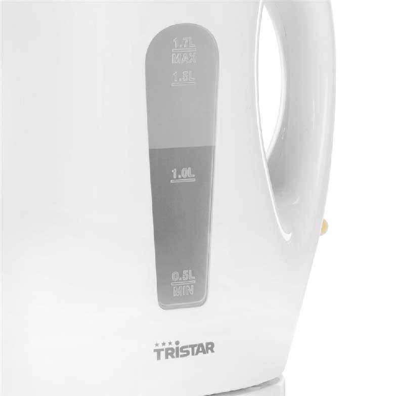 Moderno jarro fervedor branco com capacidade de 1.7 L. Devido à sua potência de 2200W o processo de ebulição é rápido. Removível da base, fácil de usar. Com indicador do nível de água.