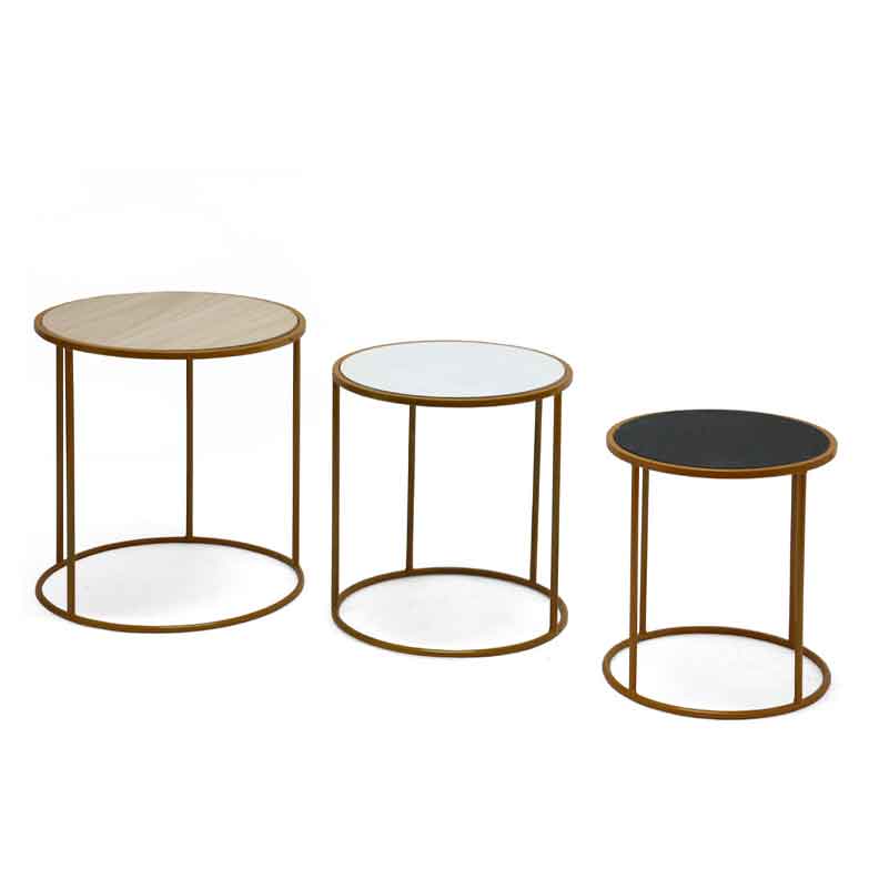 – Medidas: Mesa Grande N.1 – 47 x 47 x 51 cm; Mesa Média N.2 42 x 42 x 46 cm ; Mesa Pequena N.3 37 x 37 x 41 cm