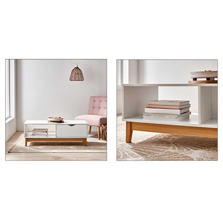 Mesa de Sala ExtensívelMesa de sala extensível 2topos, com acabamento em carvalho natura/branco.