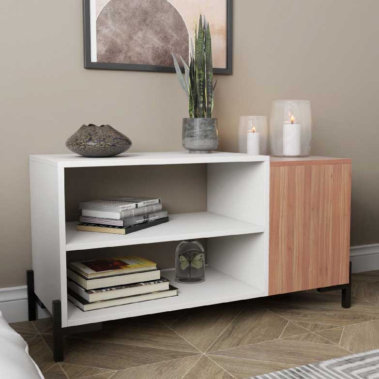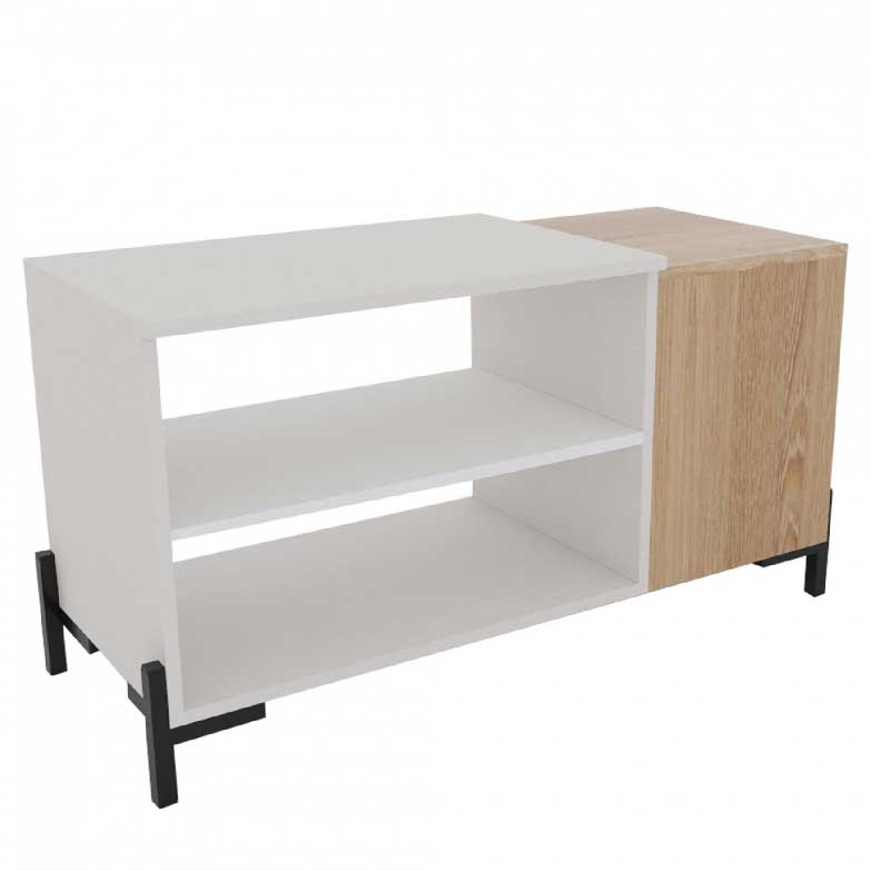 Mesa de centro com design moderno com destaque no detalhe. Estética minimalista, com bastantes zonas de arrumação. Esta mesa de centro combinada com o aparador e a base de tv da mesma linha, irá trazer luz e harmonia a sua sala de estar.
