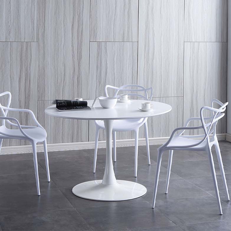 Mesa para Sala de Jantar ou Cozinha, Lacada a branco ou preto. É constituído por uma base central metálica cromada, que proporciona grande estabilidade à mesa. A tampa superior é em MDF lacado a branco ou preto. Dada a sua pequena dimensão, adapta-se perfeitamente em espaços pequenos, conferindo-lhe amplitude graças à sua configuração redonda.