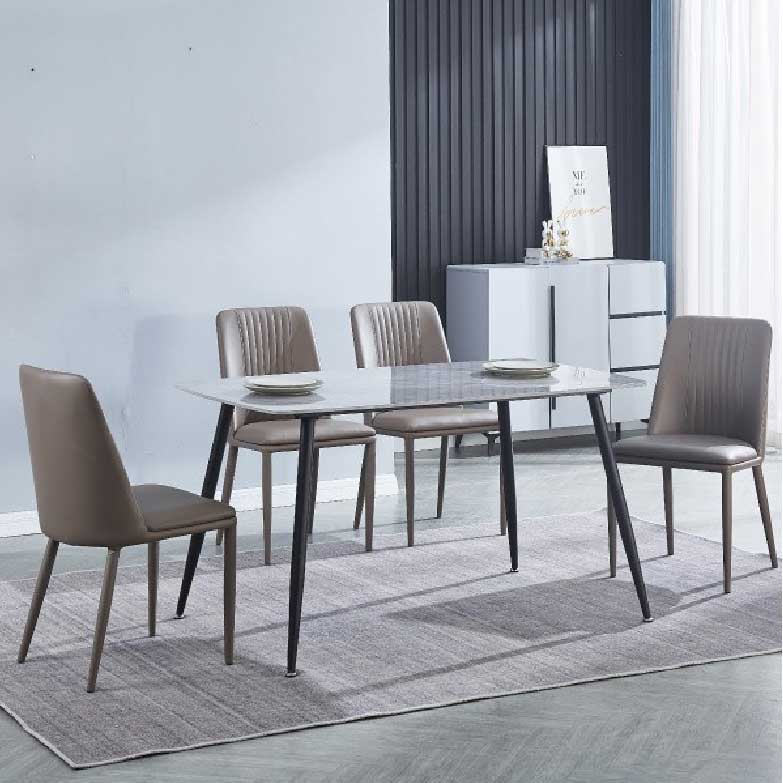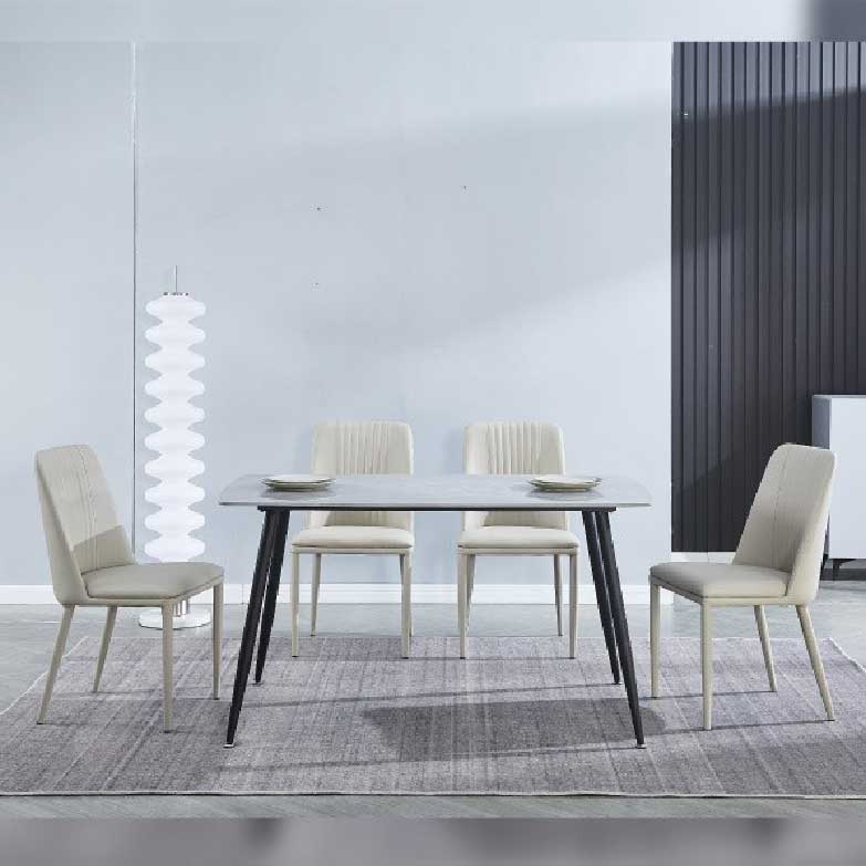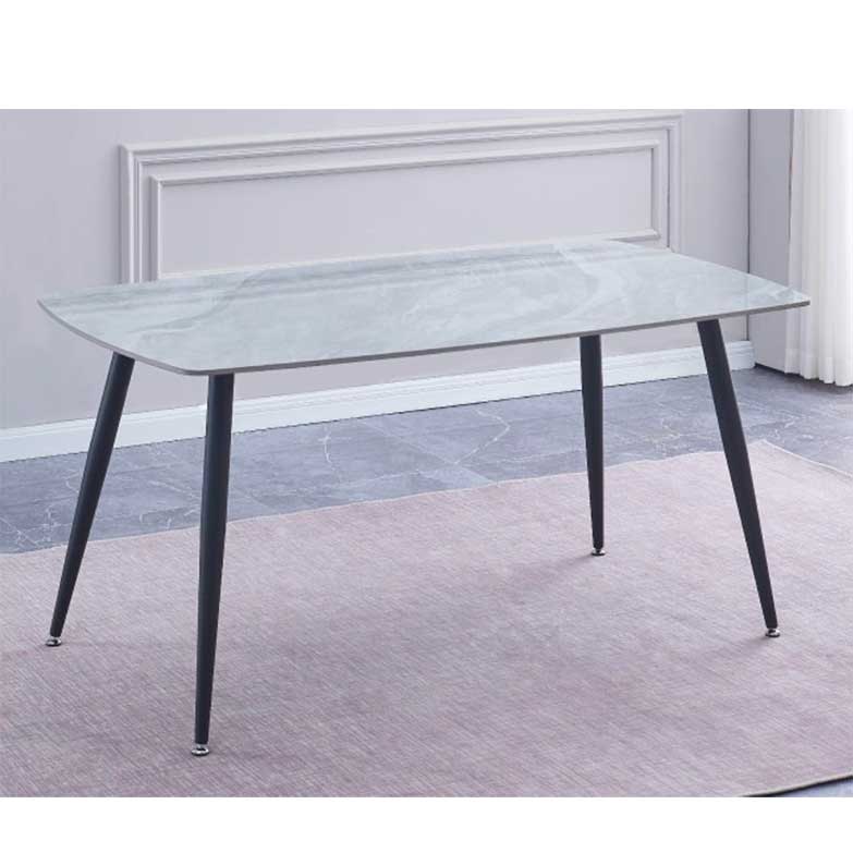 A mesa de jantar fixa com 140cm de largura, marca a diferença pelo seu design e estilo. O tampo é em cerâmica imita a mármore e as pernas são pretas. Uma combinação elegante e especial.
