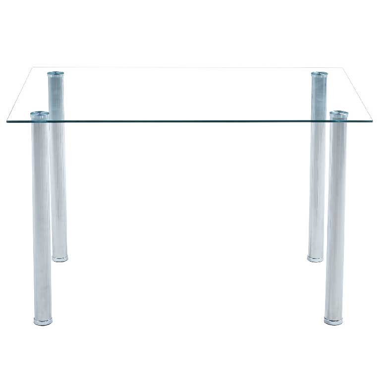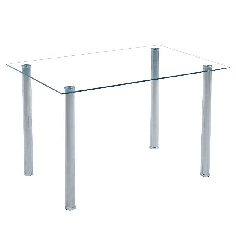 Mesa para refeições de 120cm com vidro transparente, simples, bonita, elegante e com um preço muito em conta que ficará muito bem na sua zona de refeições.