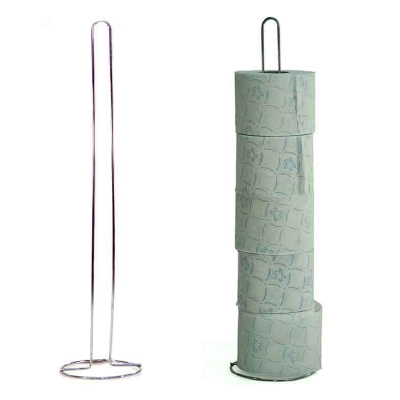 Suporte para rolos de papel higiénico em metal.