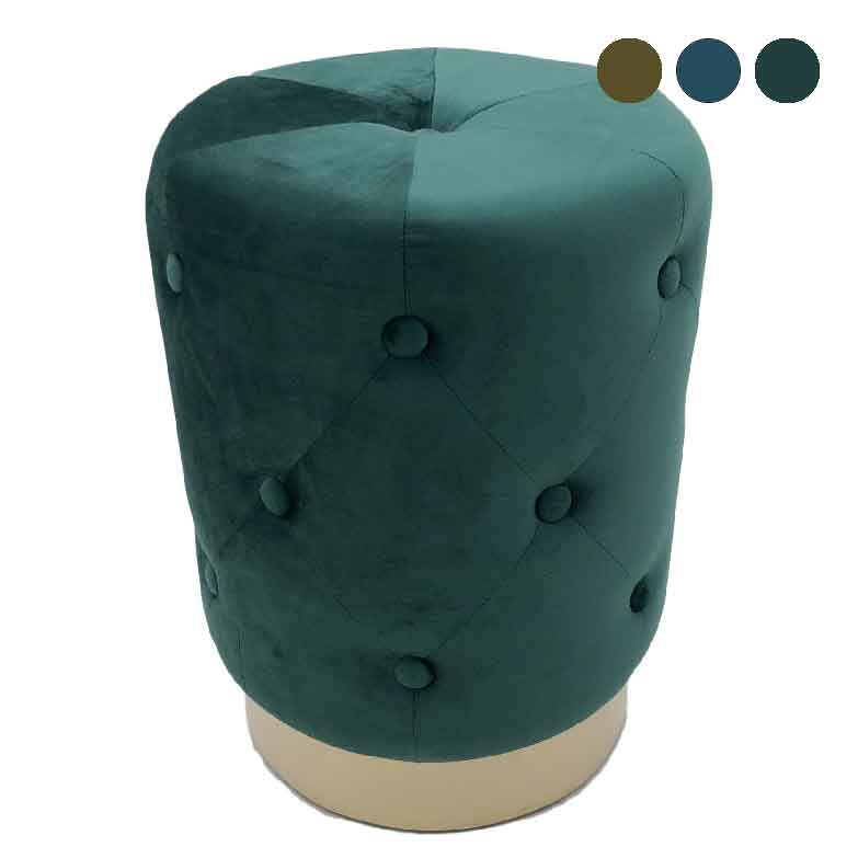 Este pufe é compacto, bonito e colorido. O assento com costura capitone e o suporte dourado, conferem uma imagem elegante e confortável.