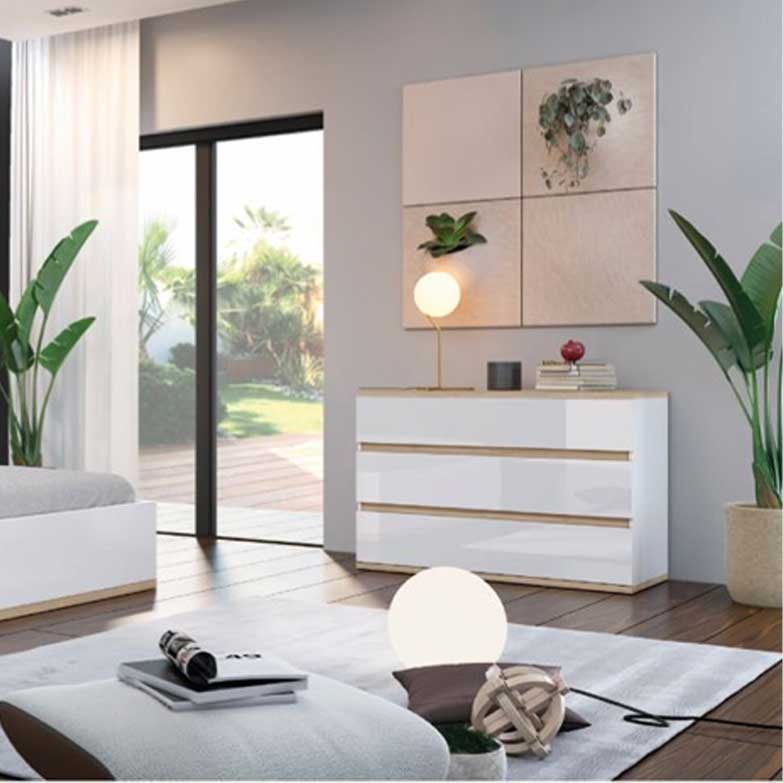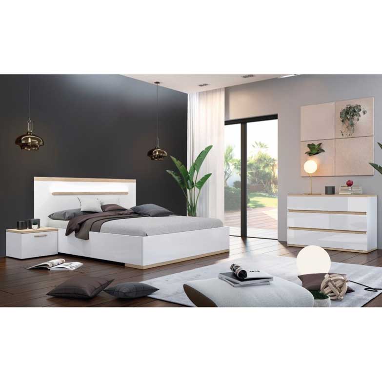 Este elegante quarto de casal de design moderno permite várias combinações de decoração desde o minimalismo ao mais arrojado. Aliado a um bom colchão vai permitir óptimas noites de descanso.