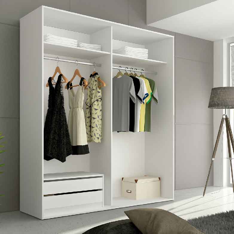 O Roupeiro com 2 portas de correr tem um design clássico de grande elegância, com uma estrutura robusta que oferece segurança e durabilidade. Possui duas portas de correr, altamente resistentes e com puxadores metálicos de longa duração. Estas portas possuem corrediças metálicas que garantem um funcionamento simples e ágil.