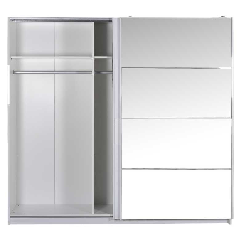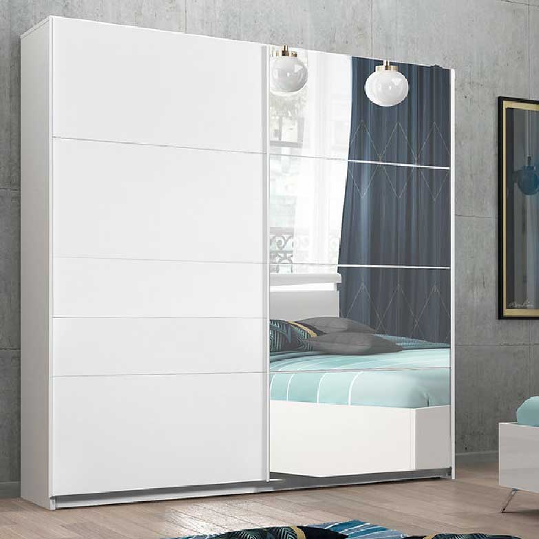 Roupeiro 2 portas de correr ideal para pequenos espaços graças ao seu mecanismo de duas portas de correr , pois ganhará em amplitude e espaço, por mais perto que a cama esteja do guarda-roupa. Além disso, também ficará bem em grandes espaços e pode ser facilmente acomodado em qualquer casa.