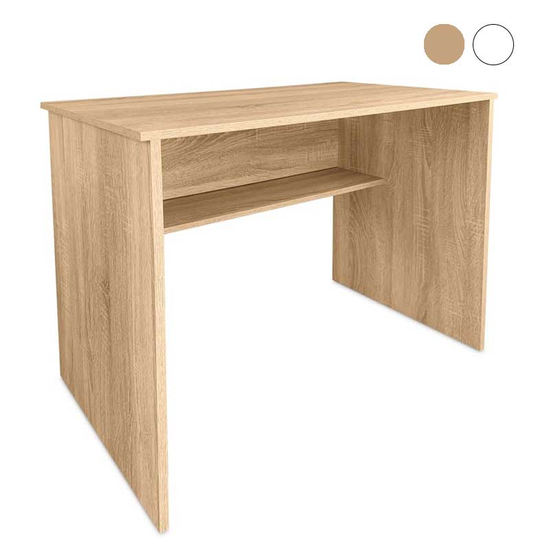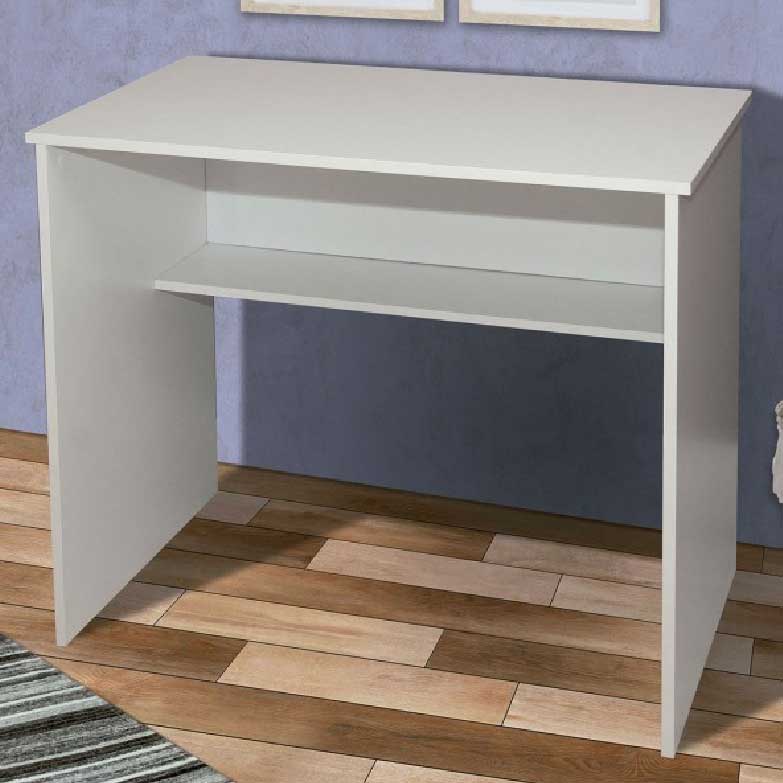 Esta secretária é uma mesa de trabalho simples que ocupa pouco espaço e possui uma prateleira inferior.