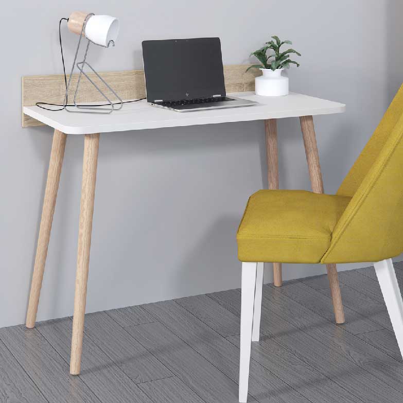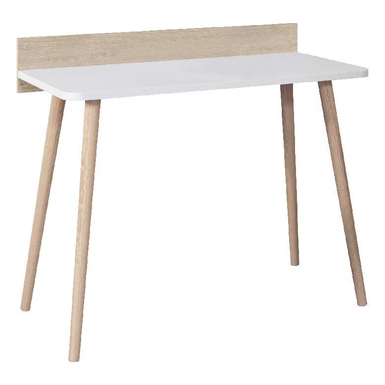 Simples, elegante e prática, esta secretária integra facilmente um ambiente de quarto, de sala ou de escritório e proporciona-lhe o maior conforto para estudar ou trabalhar. Com design de inspiração nórdica, linhas direitas, pés em cone inclinado e acabamento que conjuga o branco mate com o carvalho natura.
