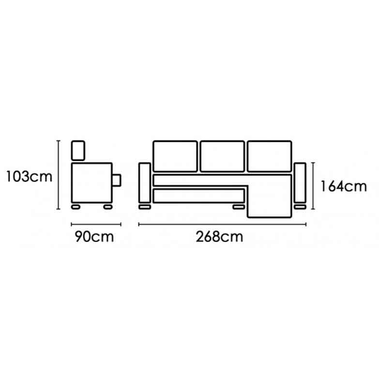 Sofá com chaise longue de 268 cm. de largura, assentos deslizantes para maior conforto e com a opção de descanso das pernas e para além disso, os encostos são reclináveis para uma maior sensação de conforto, este sofá é o ideial para a sua sala.