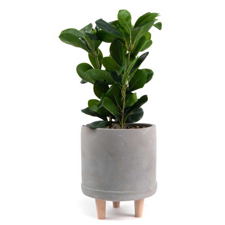 Com um vaso de cimento, esta planta oferece natureza em todos os seus elementos.